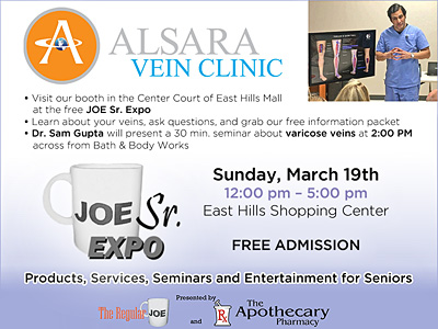 Dr. Sam Gupta from Alsara Vein Clinic will present a 30 min. seminar about varicose veins at 2:00 PM across from Bath & Body Works.