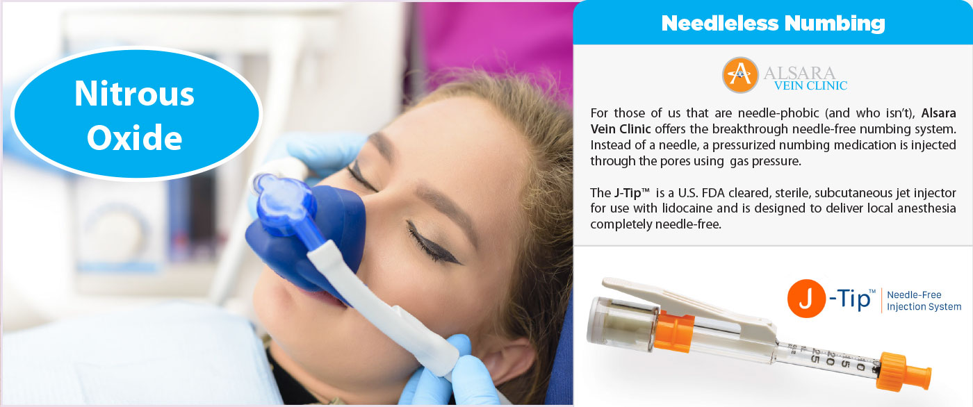 It is often reasonable to fear pain with a medical procedure, however, the treatments at Alsara Vein Clinic are virtually painless. Many of our patients have graciously shared in their testimonials attesting to that. We go to extreme lengths to make sure that the entire process is comfortable and as pain-free as possible. To help take the edge off a patient's anxiety, a nitrous oxide (laughing gas) option is available for a $30 charge.